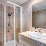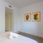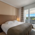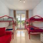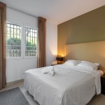 De masterbedroom met een suite badkamer (dubbele lavabo, bad/douche en WC) is voorzien van een dubbel bed, ingemaakte wandkasten en heeft directe toegang tot het ruime terras. De tweede slaapkamer is voorzien van een dubbel bed en ingemaakte kasten. De derde slaapkamer is voorzien van een dubbel (sofa)bed, twee stapelbedden en ingemaakte kasten. Ook deze derde slaapkamer heeft directe toegang tot het terras. Deze twee slaapkamers tesamen beschikken over één doucheruimte met lavabo en WC. De slaapkamers hebben een prachtig zicht op de mediterrane tuinen.