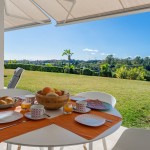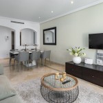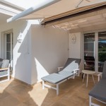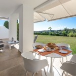 Het appartement omvat een ingerichte leefruimte met stoelen, eettafel en een salon met sofa. Er is een Smart Tv en WiFi. Het salon geeft uit op een breed zuid-west gericht terras voorzien van een buitensalon, een eetgedeelte en een apart gedeelte met ligbedden. Het terras dat voorzien is van zonneschermen, kijkt uit over de heuvels en golfterreinen. Er is een uitgeruste keuken met aansluitend een afgesloten ruimte met wasmachine en droogkast. Het volledige appartement beschikt over airconditioning.